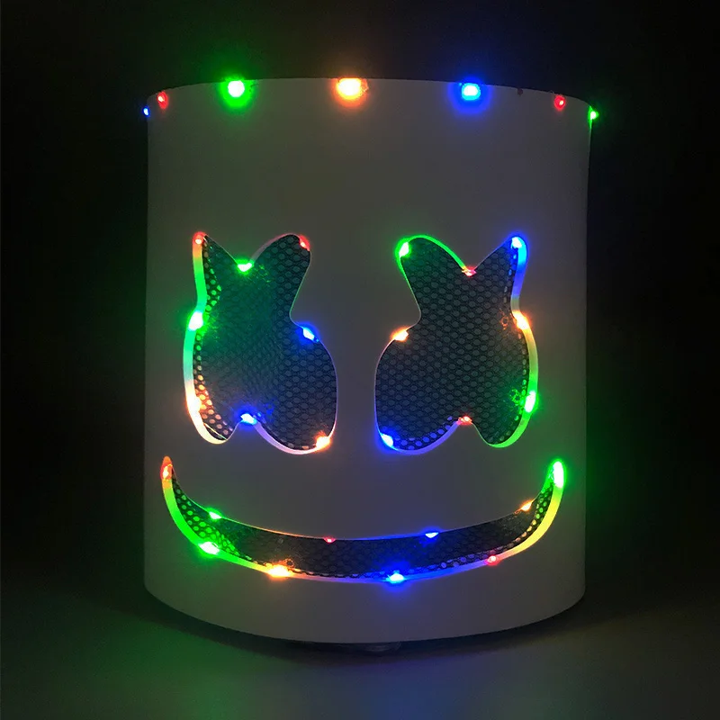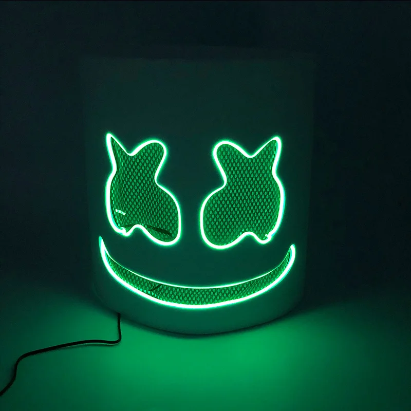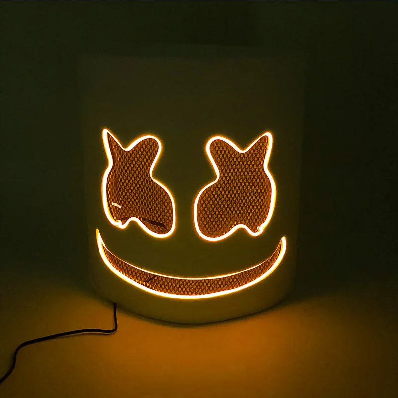 ハロウィン 光るマスク フルフェイス LED ネオン マシュマロ マスク ヘッドギア 発光 DJ 音楽フェス 小道具 コスプレ レイブ パーティー マスク